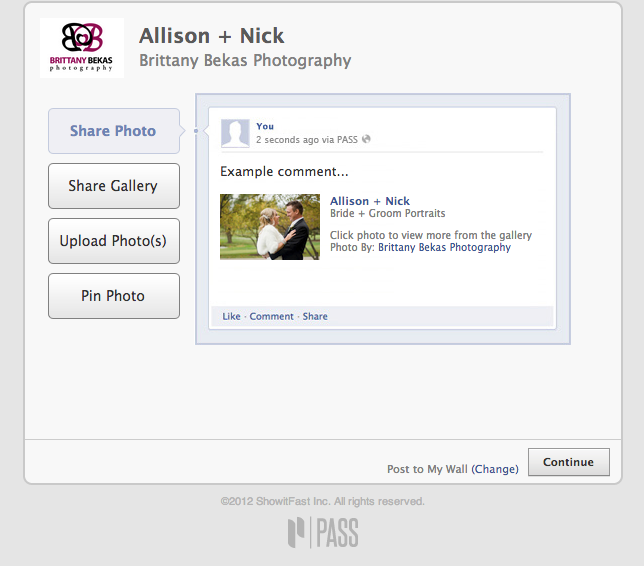 And on top of being able to download your photos, you can very easily share everything right from PASS. Share a single photo to Facebook or Pinterest or you share the complete gallery. That means less time uploading and more time for creeping …. just saying.